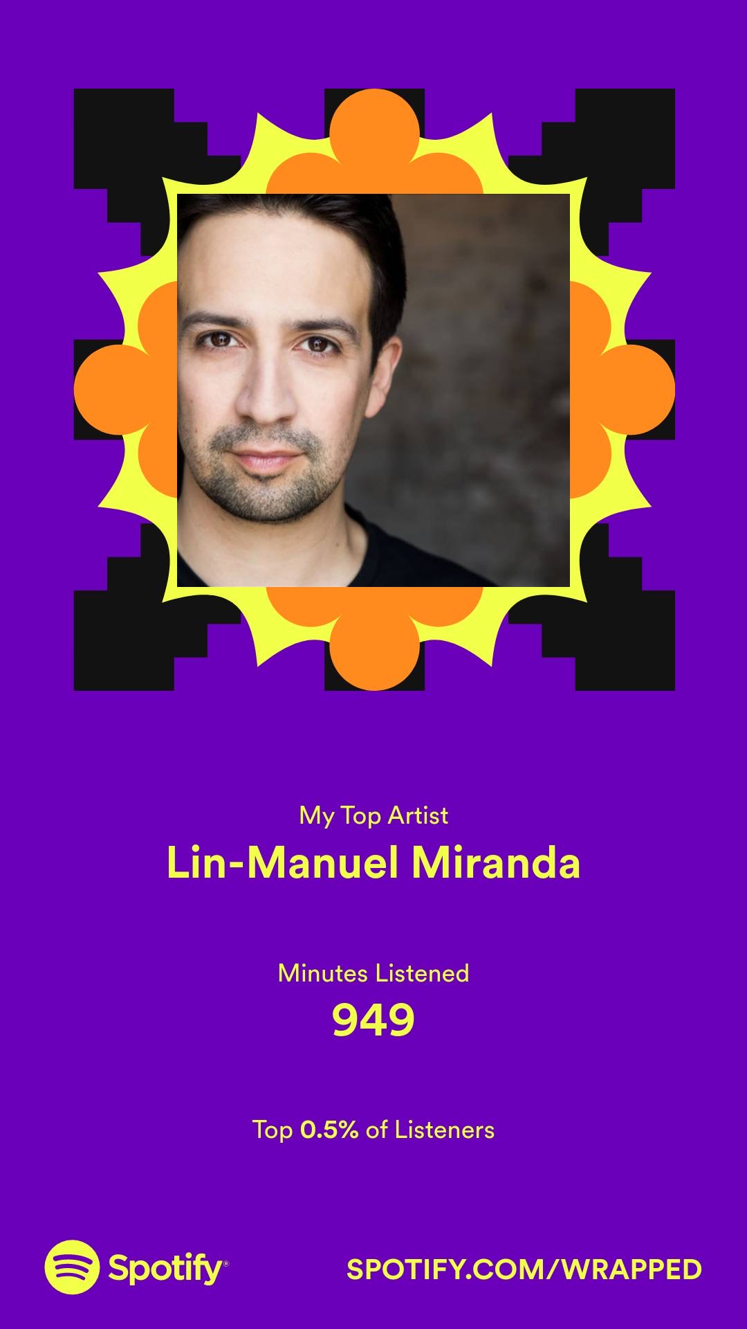 The Lin-Manuel Miranda part alone makes me start to wonder how many decimal places out the % goes? But even more than that I can’t help but wonder if there is one person out there that has it say “You are the Top Listener” and if so how much do you have to be listening to a person or song to be the top listener?